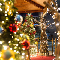 Instalatie de Craciun liniara Yoto, 10 m, din care 1 m cablu priza 220V, 100 LED, 8 jocuri de lumini, beculet in 6 colturi, pentru interior, controler, fir negru, alb cald