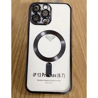 Husa MagSafe pentru Apple iPhone 13 Pro, Protectie camera, Full TPU, Margini colorate Electroplating, Magnetica, Incarcare Wireless, Negru