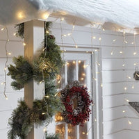 Instalatie Craciun Turturi, IP44, 5 m, 143 Led-uri ,Perdea Franjurata, Alb cald, 8 jocuri de lumini, Transformator 31 V, Putere 9 W, Interconectabila, Interior/Exterior, Prelungitor 3 m inclus, Fir Transparent, Flippy