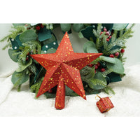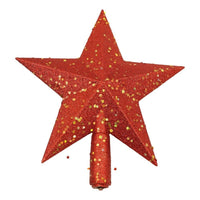 Varf decorativ de brad, Rosu, in forma de Stea, design cu paiete, din Plastic, 18 cm x 20 cm, Interior/Exterior