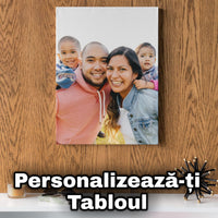 Tablou Personalizat - folosim o pânza canvas speciala, asemanatoare panzei de pictura din bumbac. Se înrameaza pe un cadru de lemn tratat, rezistent in timp, de 20-30mm grosime.